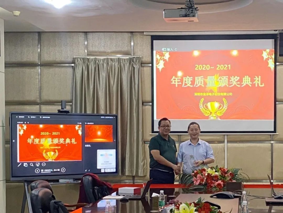 10月30日,熱烈歡迎華為質(zhì)量領(lǐng)導蒞臨金洋電子現場(chǎng)頒獎與指導,會(huì )上領(lǐng)導們主要在質(zhì)量發(fā)展和內部改善上面進(jìn)行了深入的交流和探討,并匯報近兩年在華為端質(zhì)量與KPI達成情況。